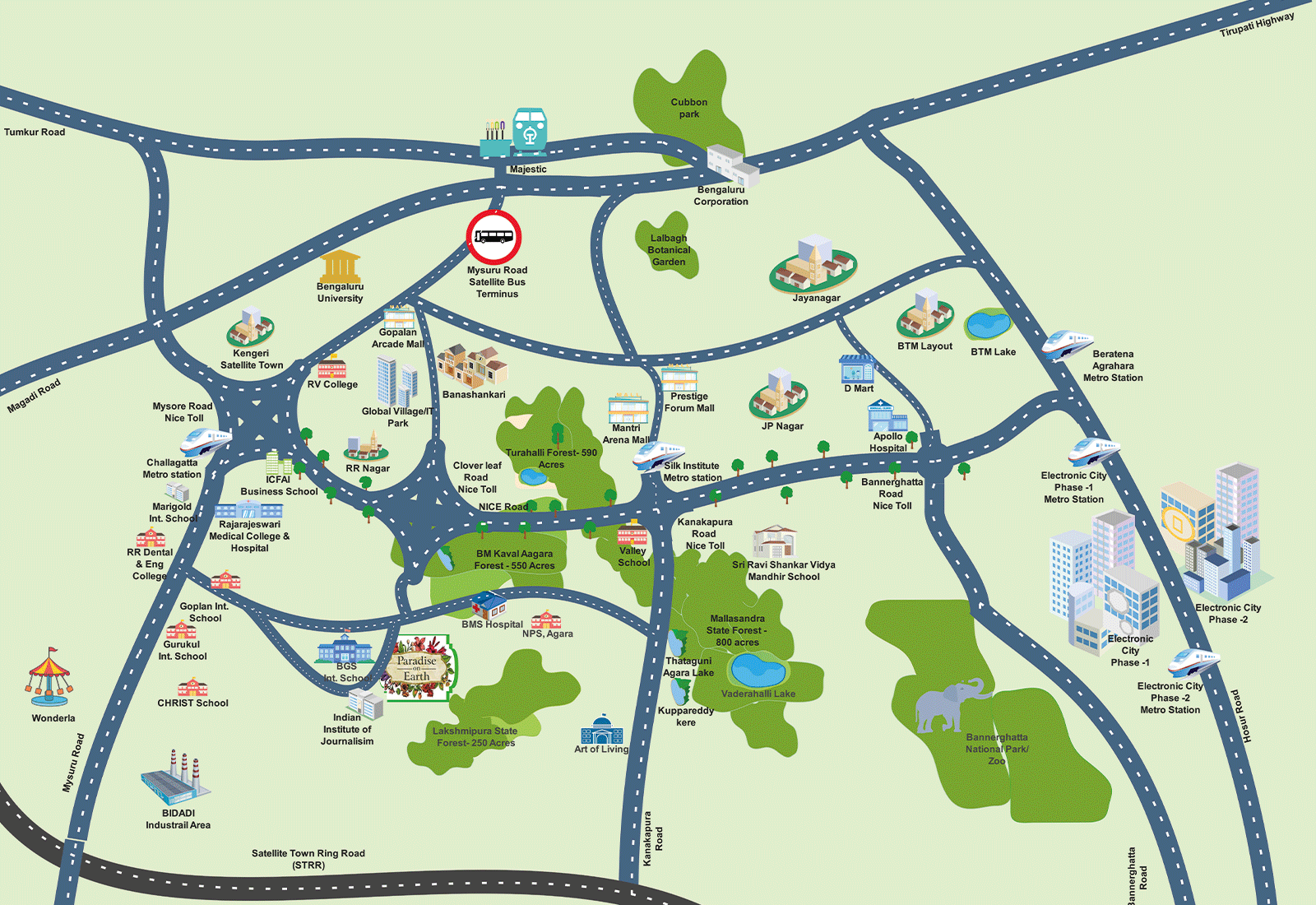 Introducing Urbanrise Paradise on Earth, Bengaluru's first water super abundant villa community located in Gangasandra, Bengaluru. Nestled amidst 2,190 acres of state-reserved forests, this visionary project conserves 3.85 crore litres of rainwater using innovative Bhungroo wells technology, recognized by the UN. It also generates 51 crores worth of green energy over 25 years. Experience luxury living with a lavish clubhouse, extensive outdoor leisure facilities, and the serenity of over 1,500 native trees along with personal organic gardens, providing an unmatched living experience.